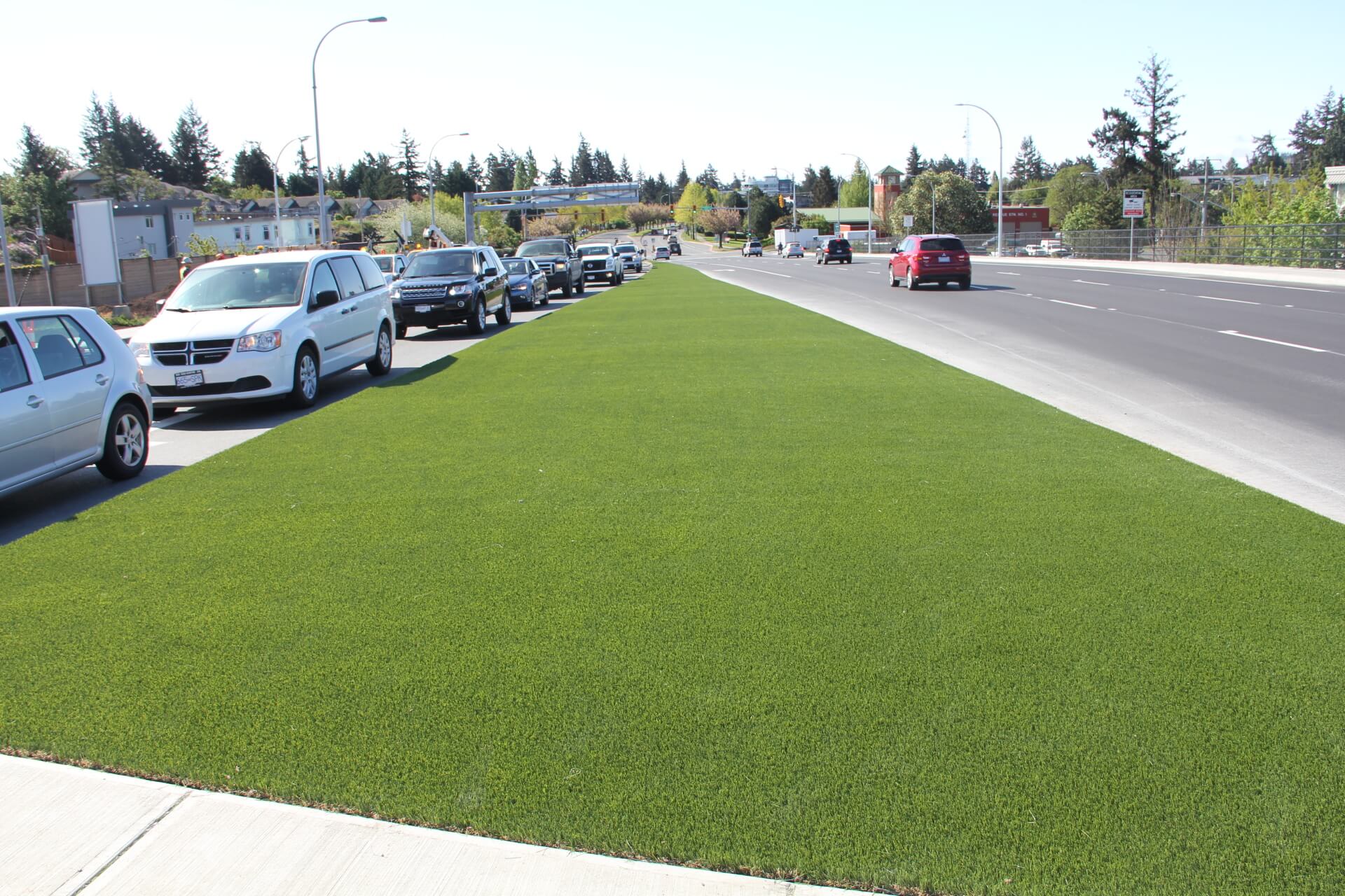 Commercial landscaping creates an appealing outdoor business space and enhances your business’ image with customers, clients, and employees. It also eco-friendly, reducing erosion and noise pollution. Commercial high-rises, office complexes, and industrial parks all benefit from making the switch from natural to synthetic grass. SYNLawn Vancouver Island’s artificial turf products are designed to withstand heavy and consistent foot traffic, making them the perfect way to reinvent your commercial property. They’re a durable, low-maintenance commercial landscaping solution that matches or even exceeds the beauty of natural grass.