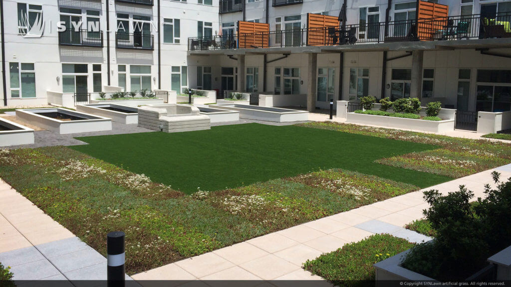 With its reduced water usage and maintenance time, SYNLawn artificial grasses offer commercial property owners and managers a speedy return on their investment. Our commercial installation services include free on-site evaluations and customized designs and layouts.