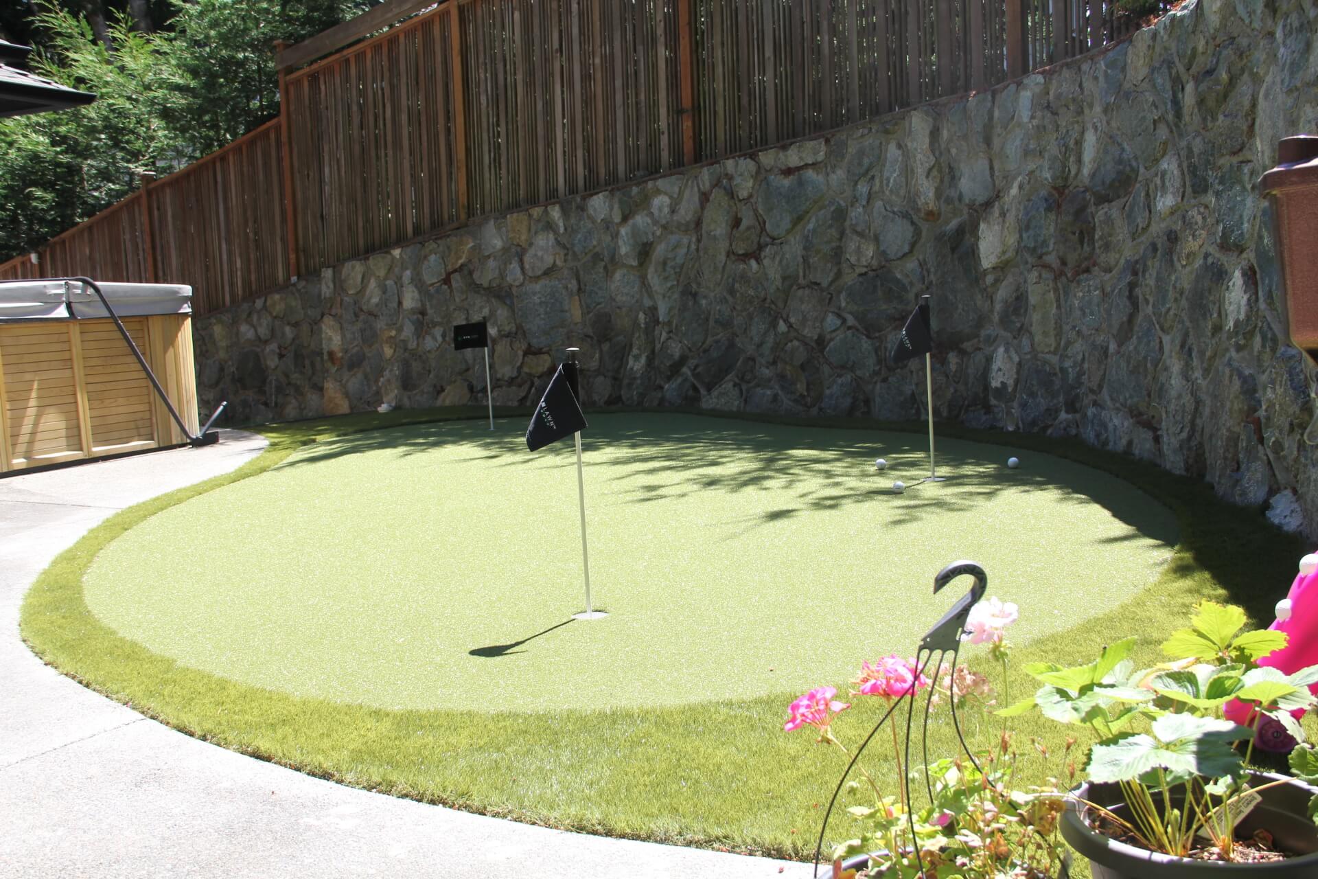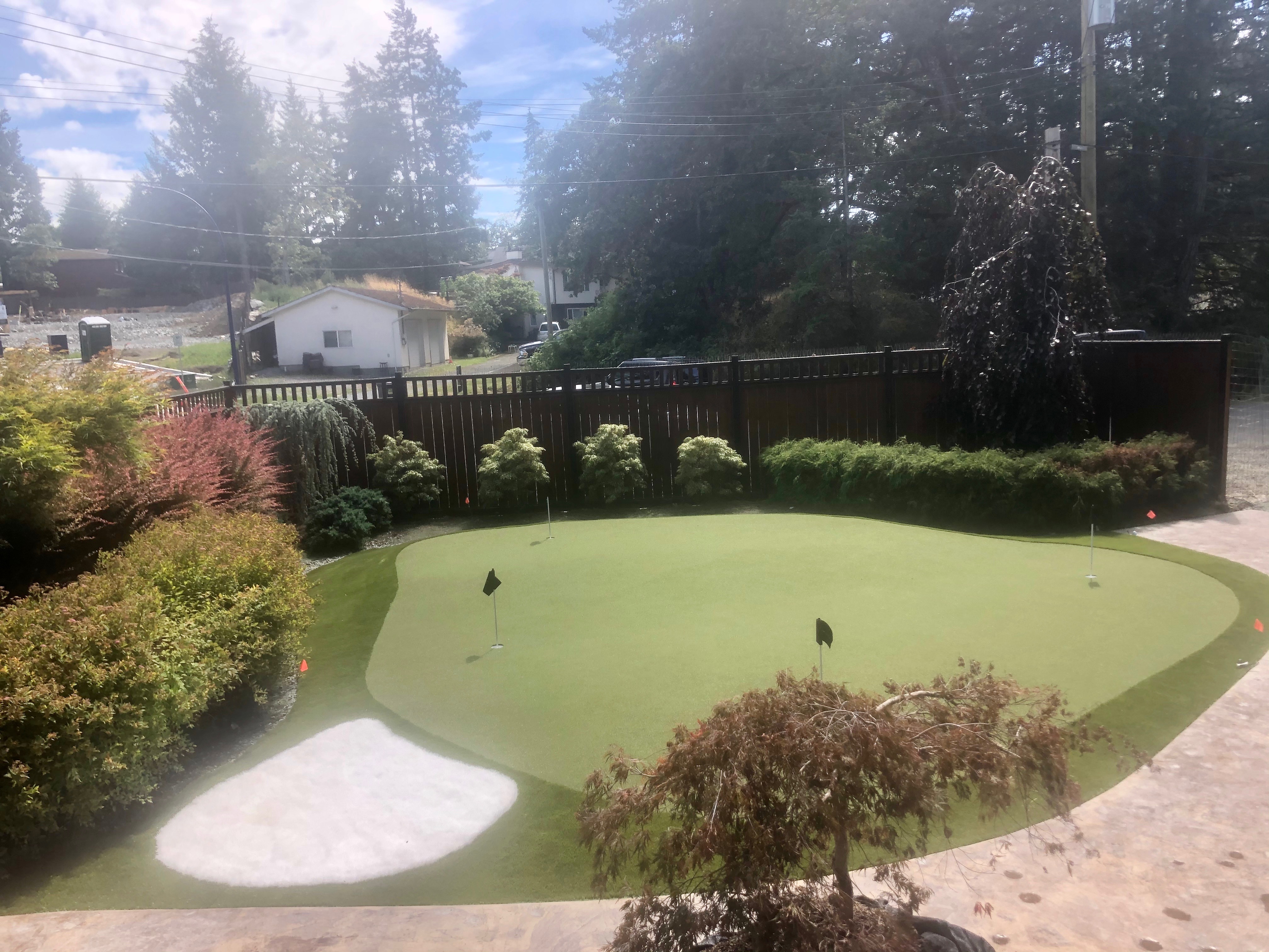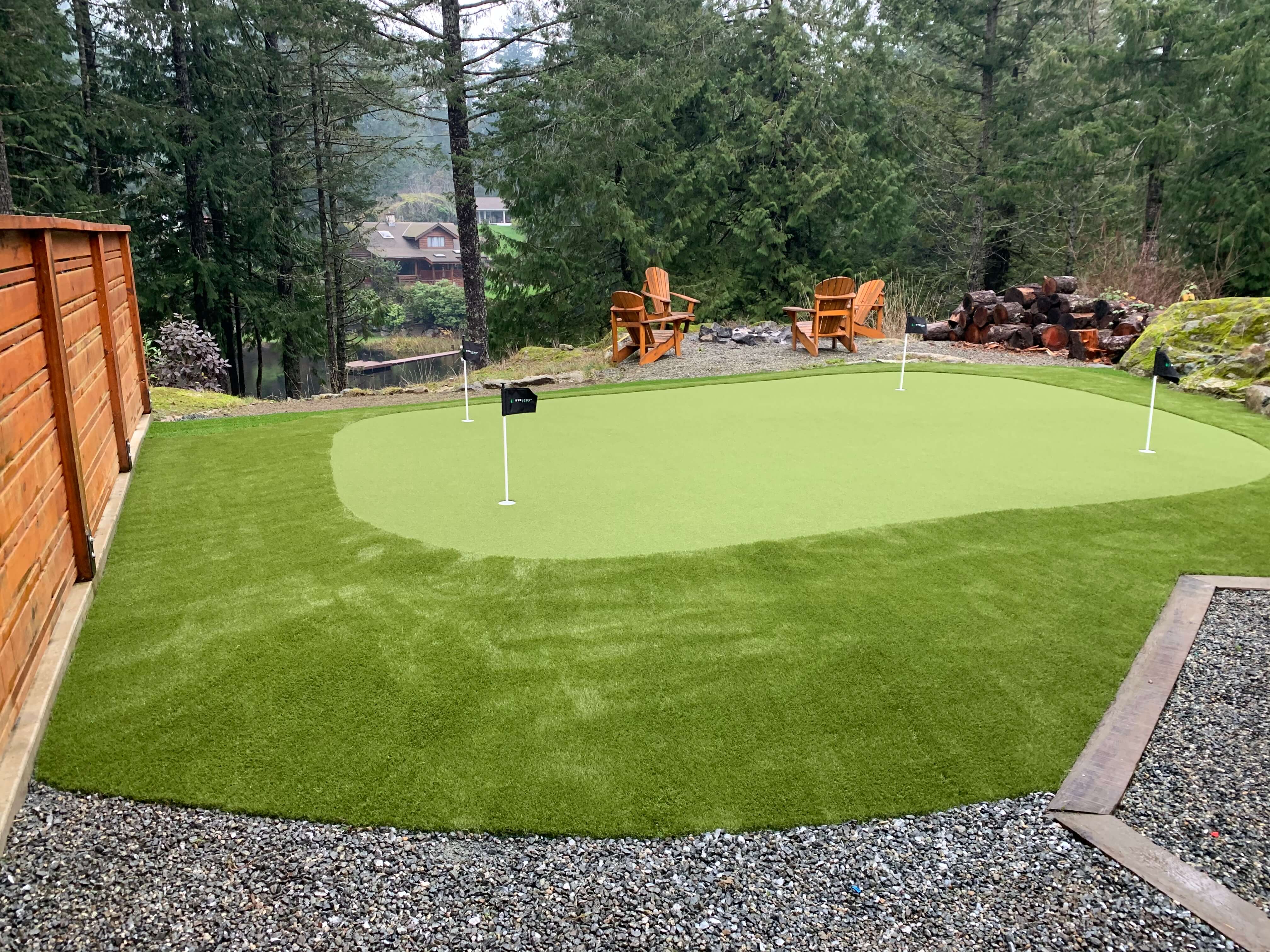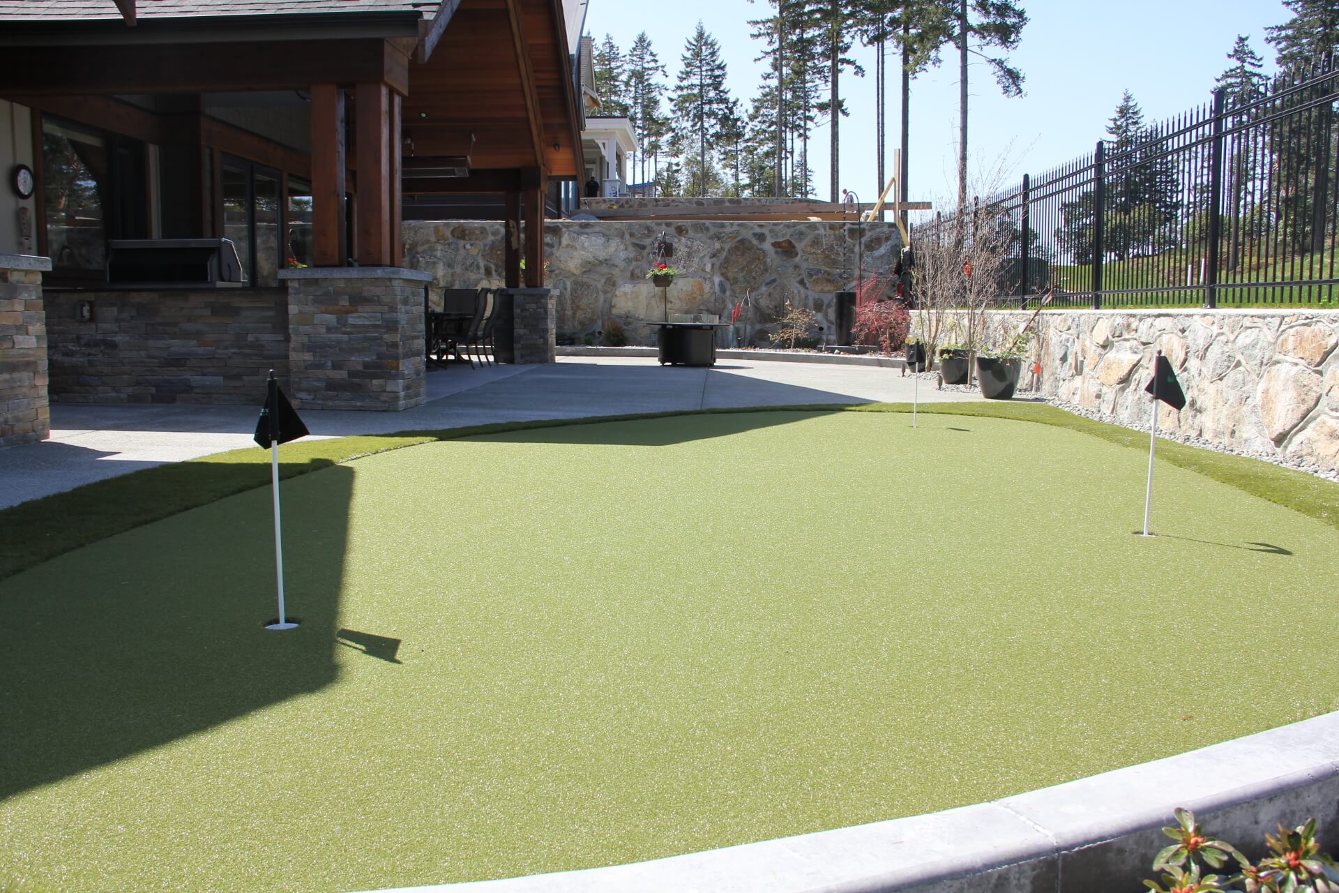 The experts at SYNLawn Vancouver Island work with you to create a practice green that meets your golf needs and complements its surroundings. Our synthetic putting green systems include: