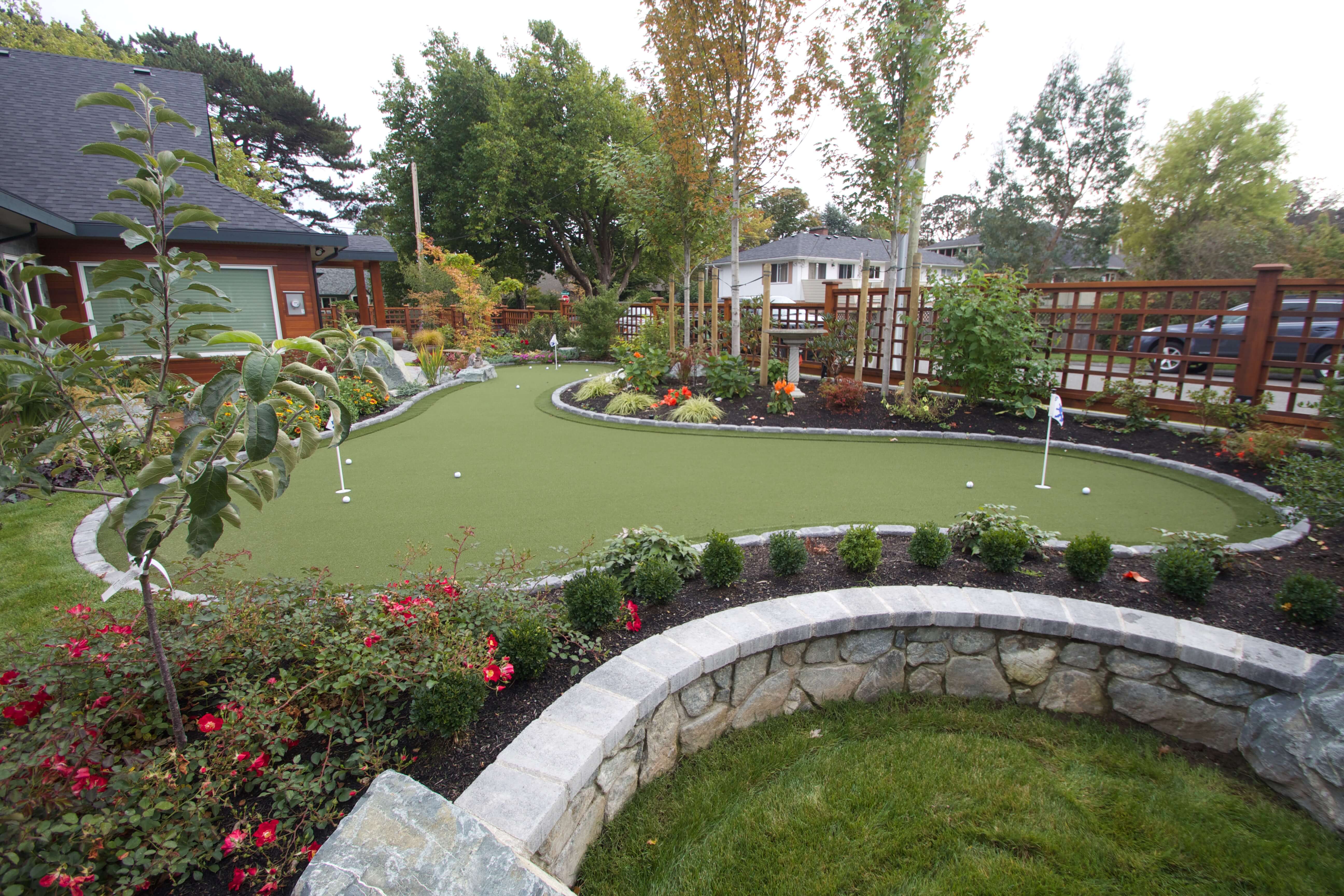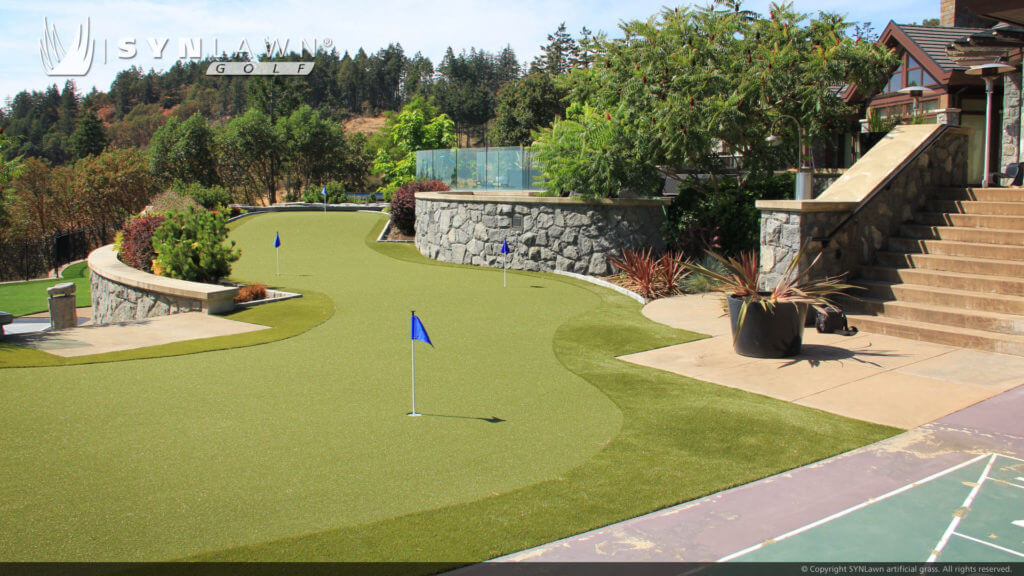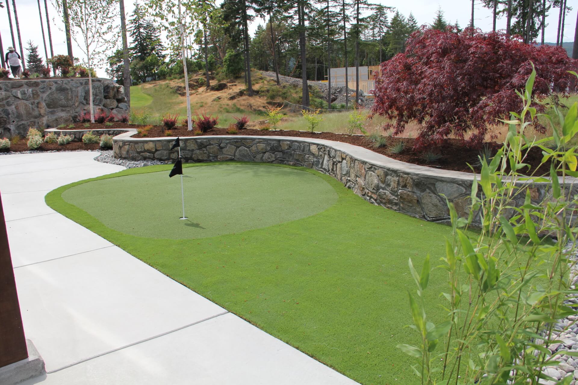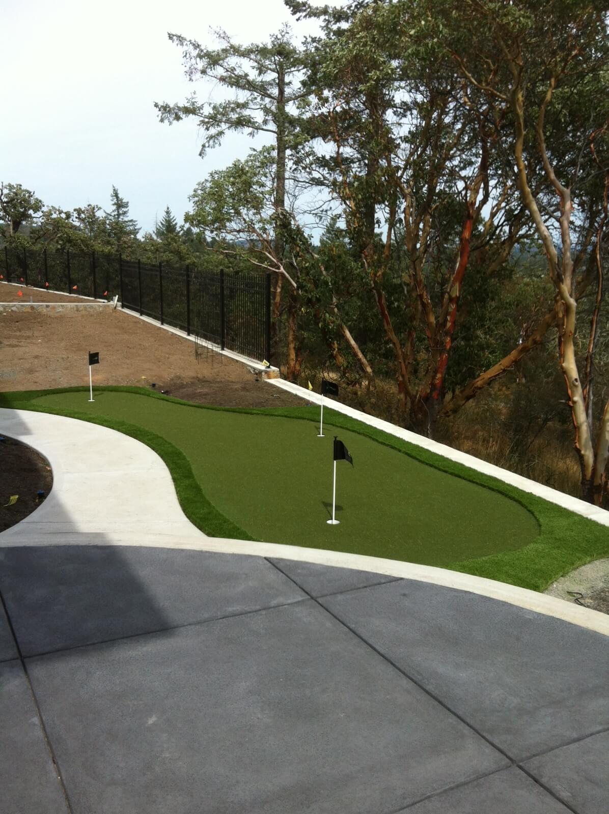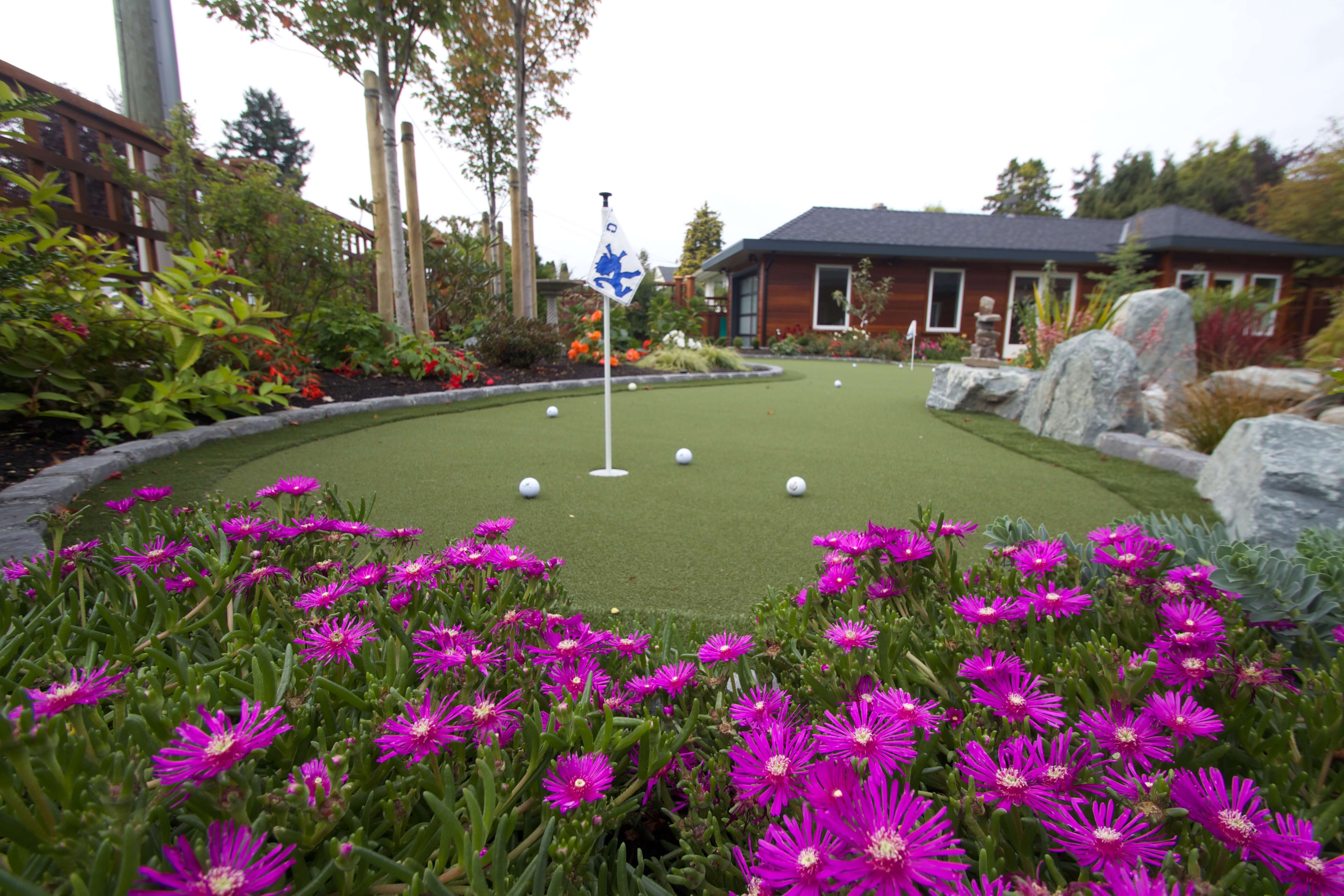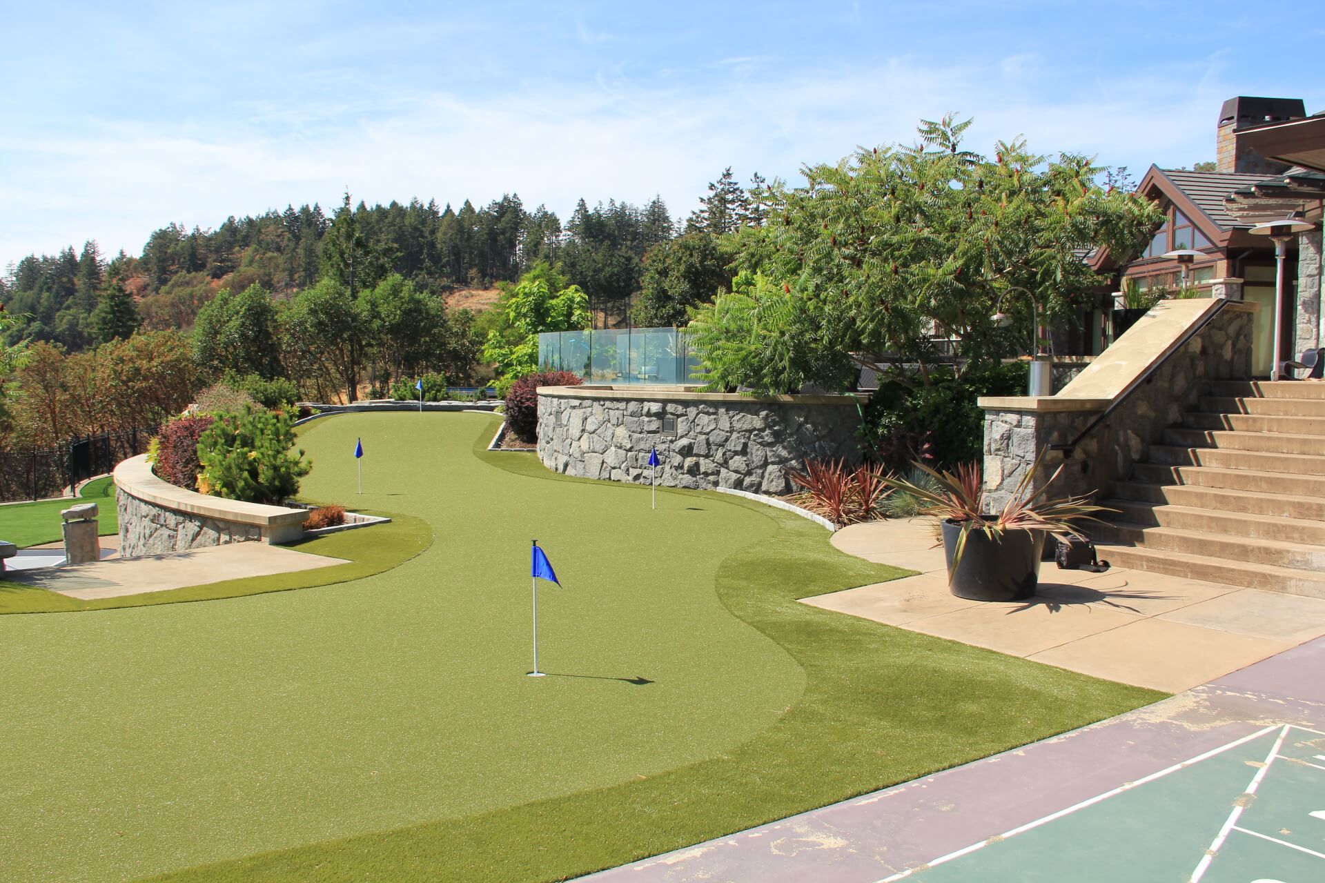 The experts at SYNLawn Vancouver Island work with you to create a practice green that meets your golf needs and complements its surroundings. Our synthetic putting green systems include: