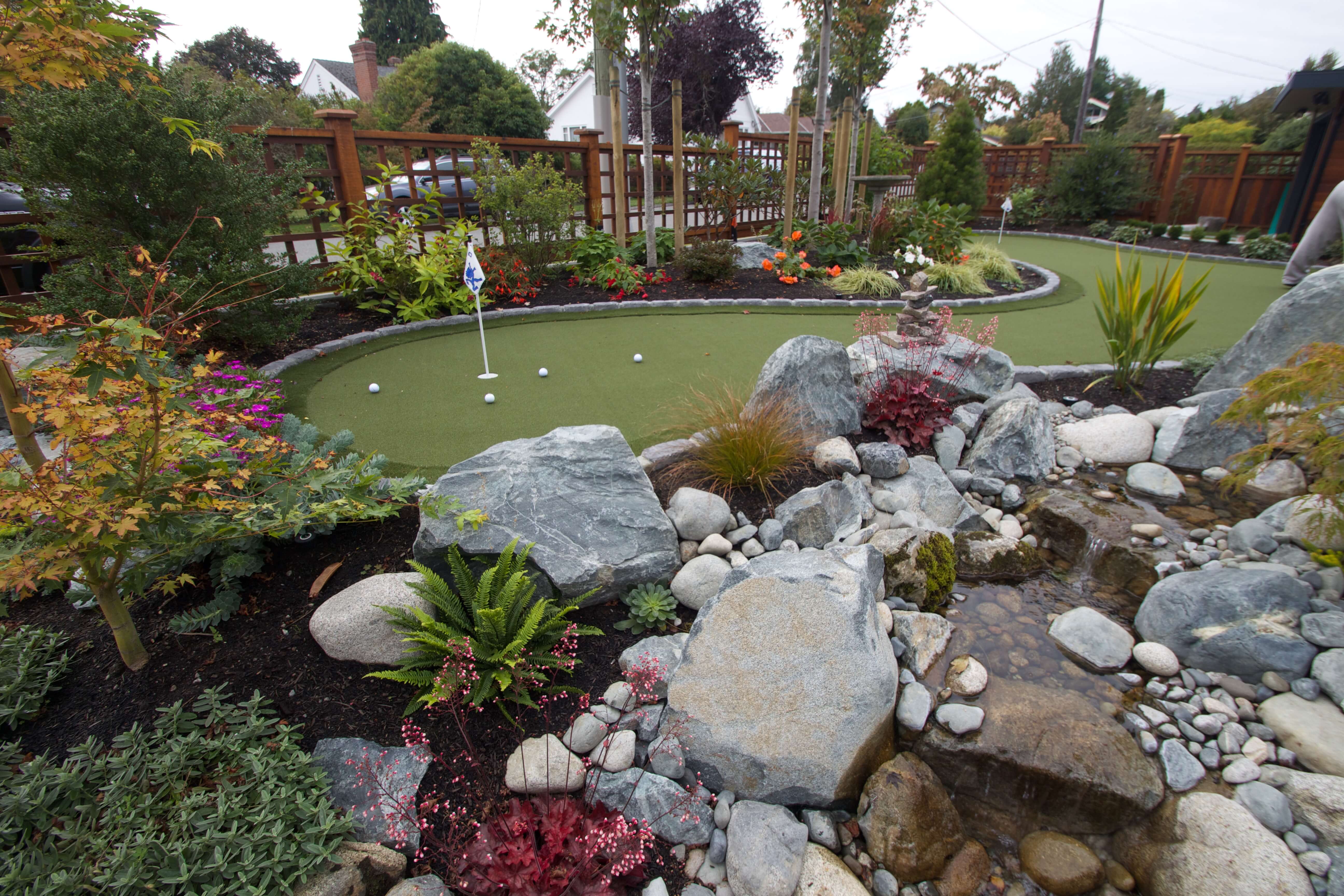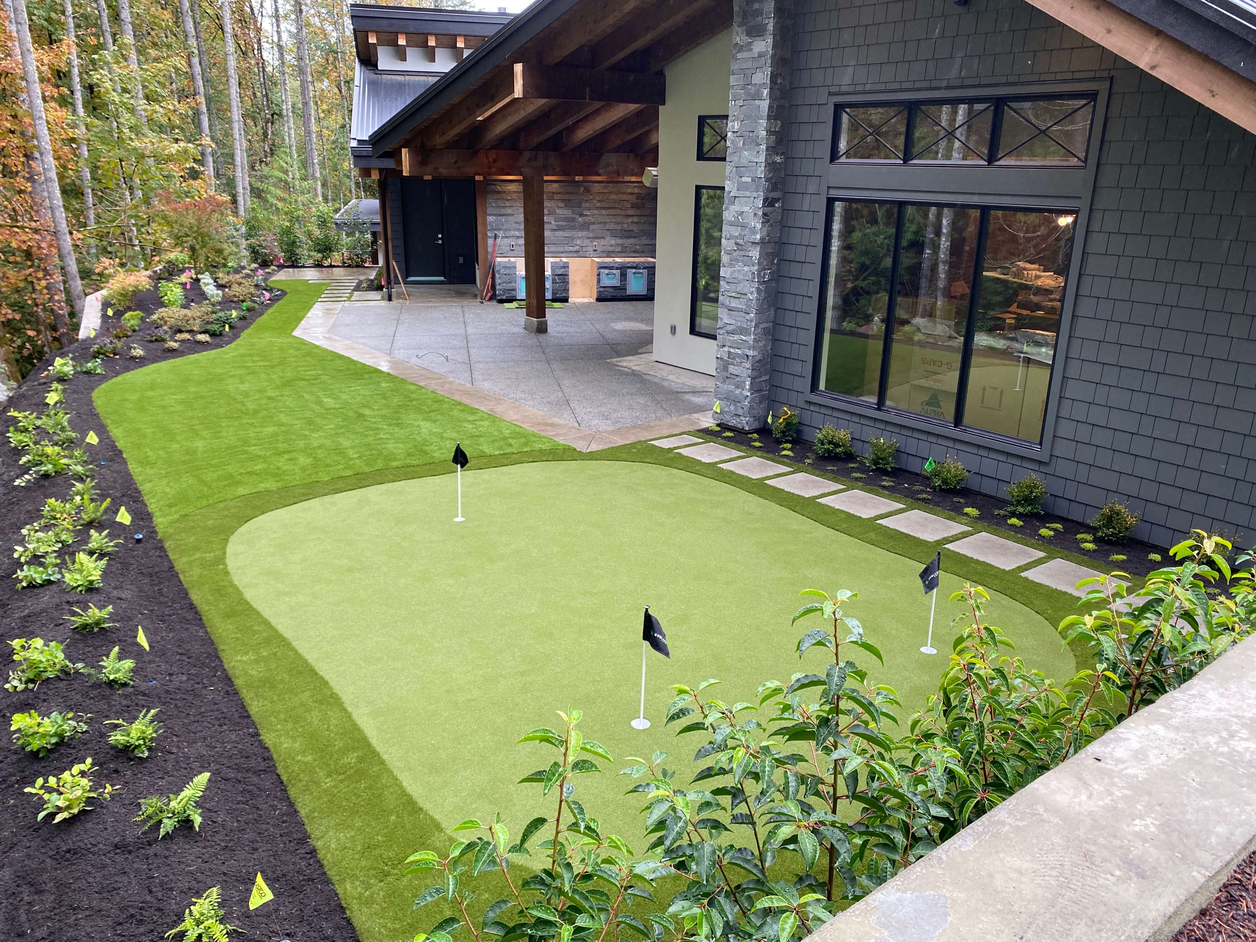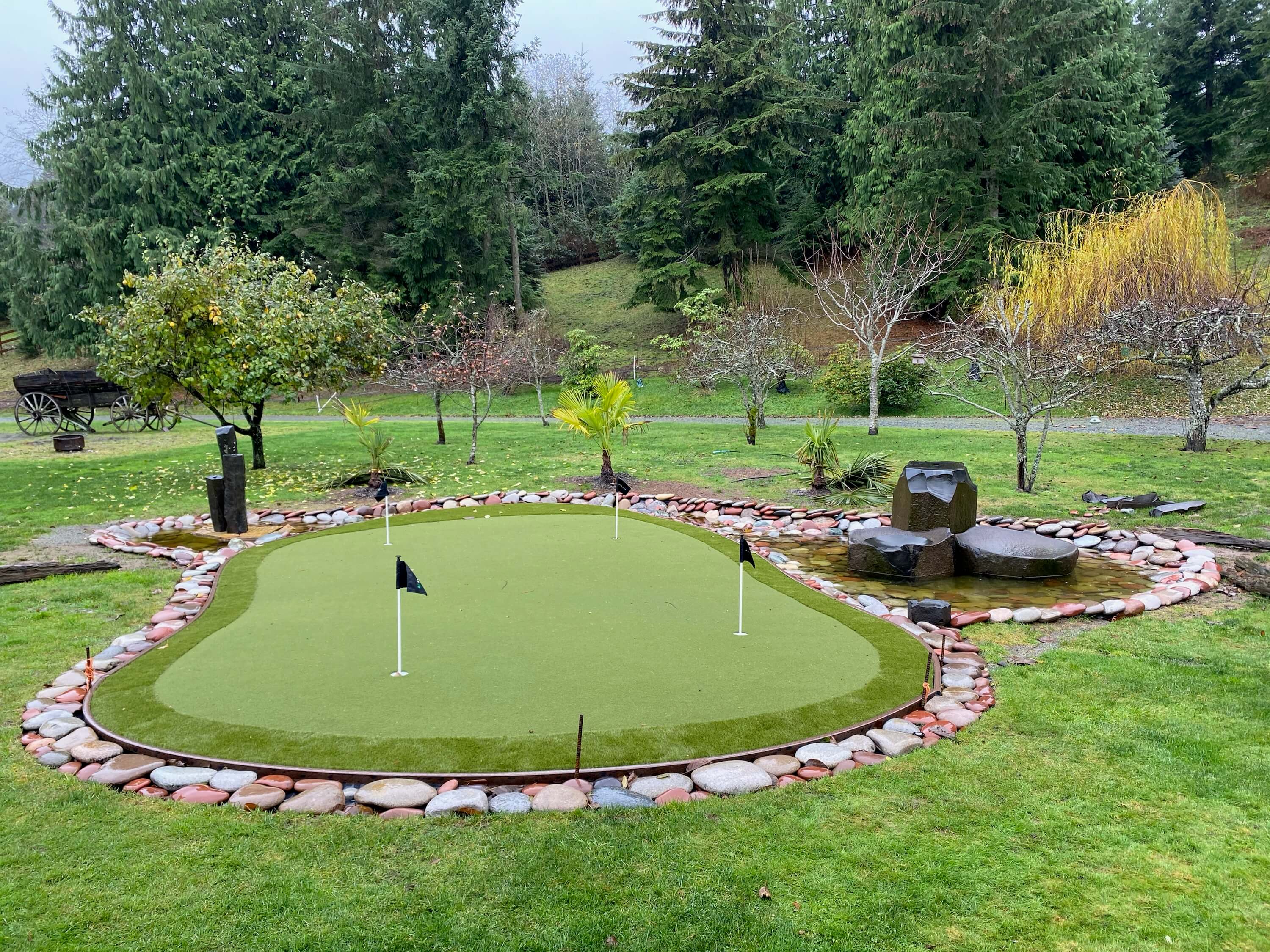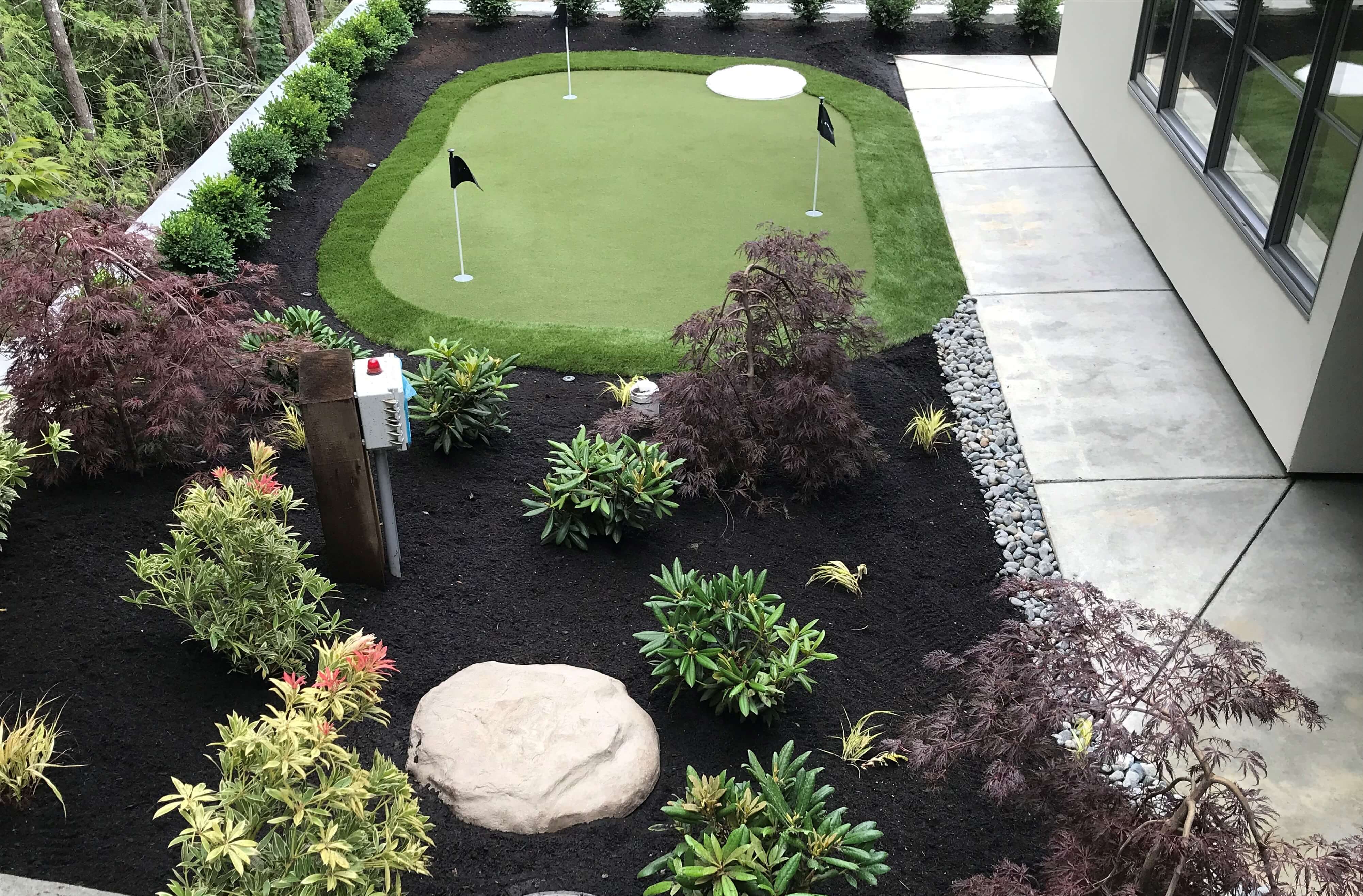 The experts at SYNLawn Vancouver Island work with you to create a practice green that meets your golf needs and complements its surroundings. Our synthetic putting green systems include: