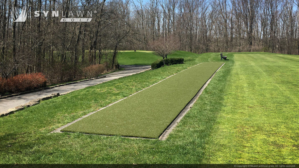 portable fairway mats. A non-permanent option available in four sizes, these portable mats assemble or disassemble in minutes on virtually any indoor or outdoor flat surface. Ideal for locations with limited yard space, they offer true ball-roll, realistic fringe, and adjustable contours.