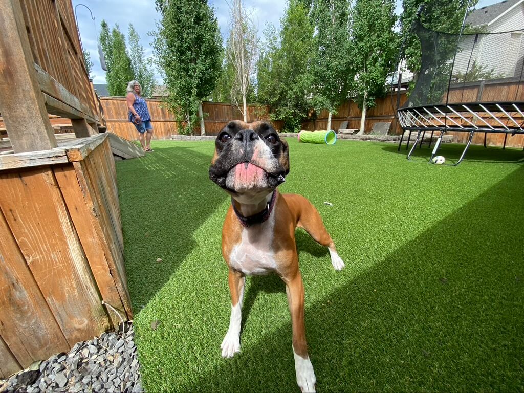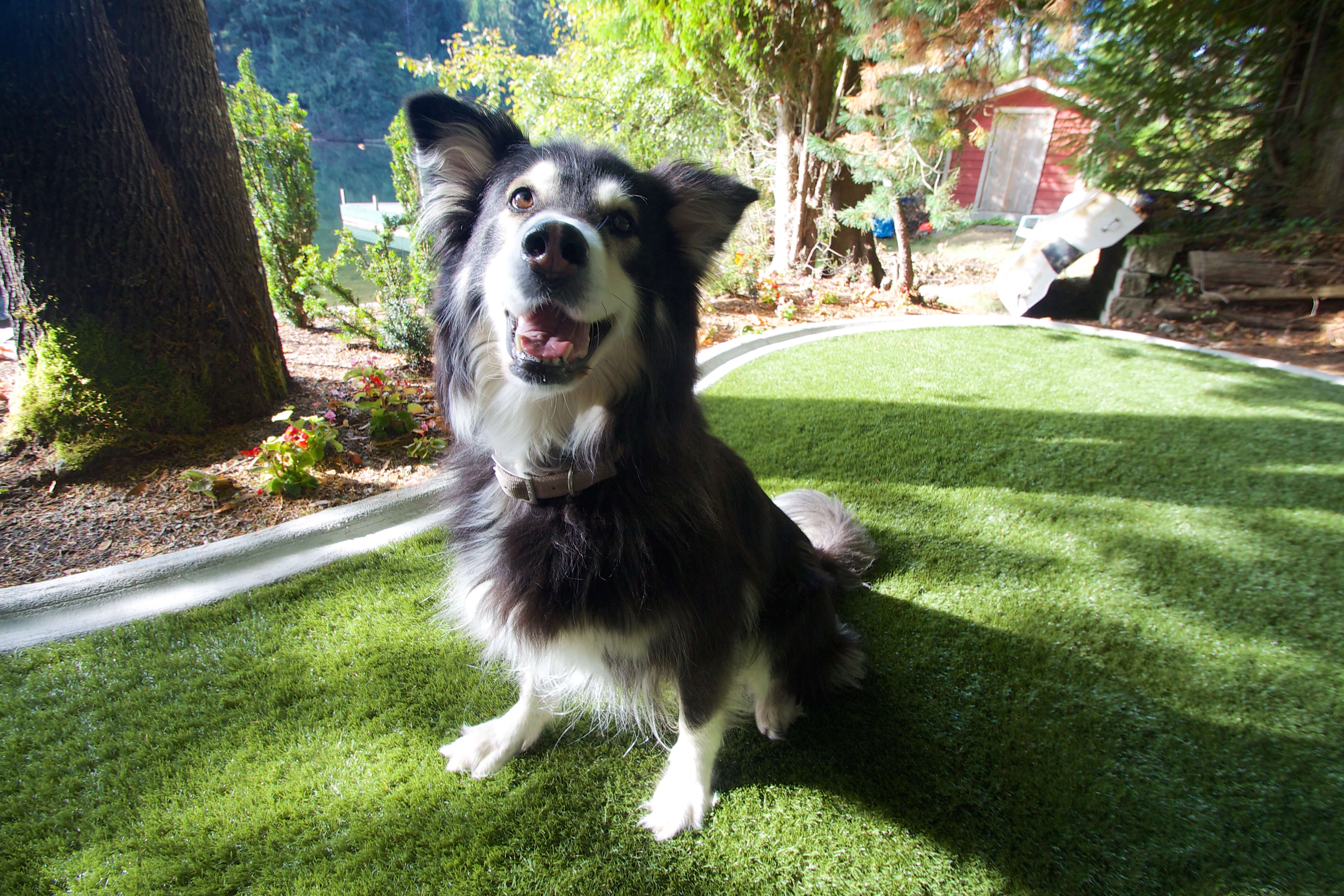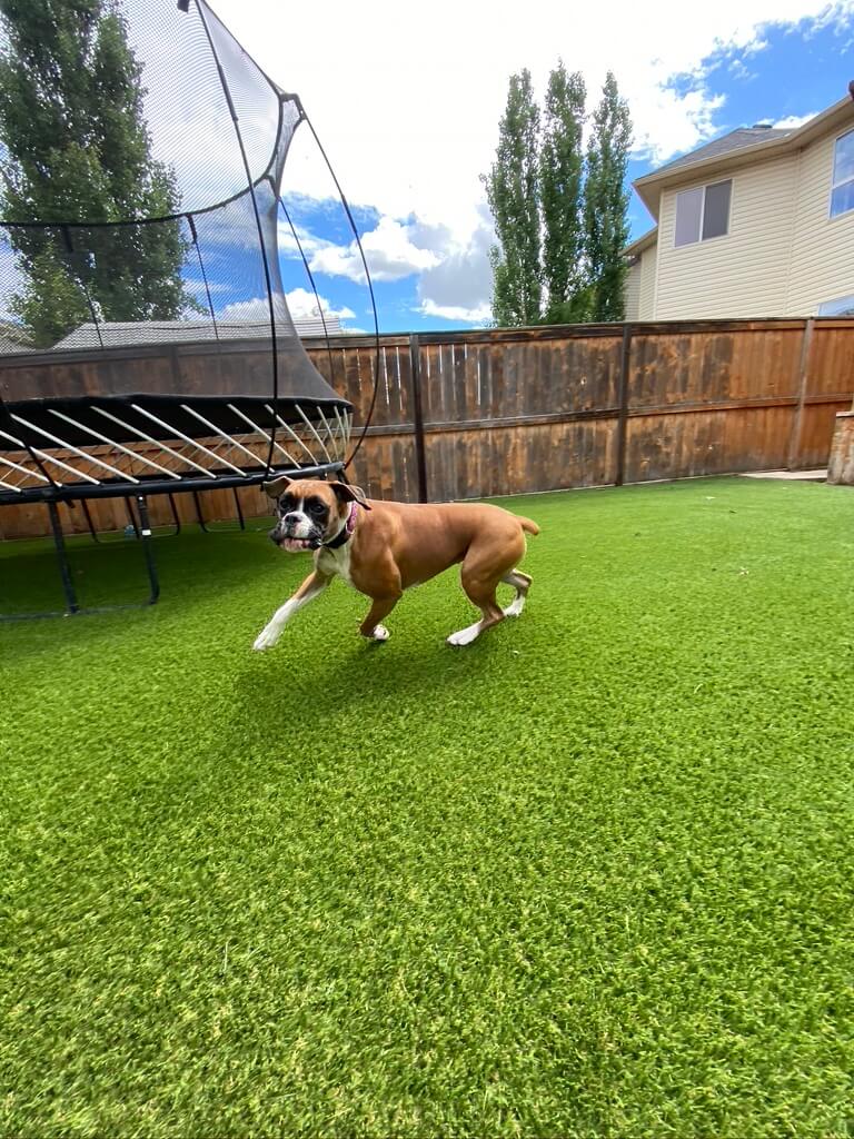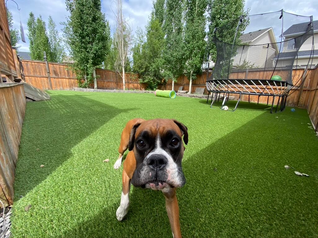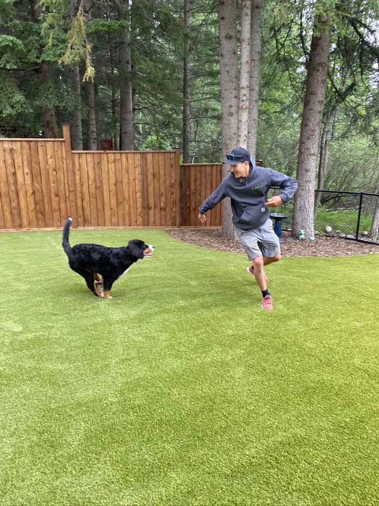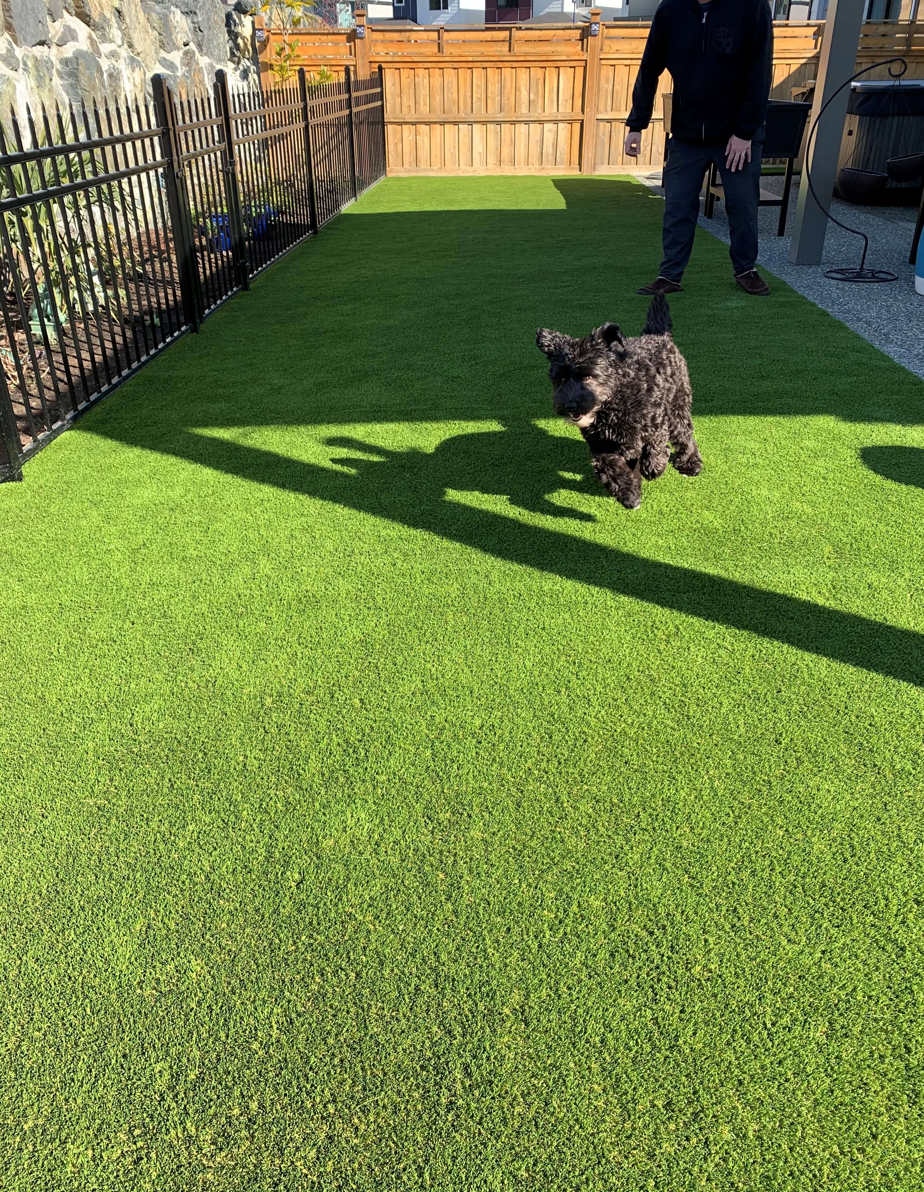 SYNLawn Vancouver Island’s premium artificial grass for pets ensures a safe, fun, and low-maintenance environment for your dog, cat, or other pet. You enjoy a beautiful landscape, and your pet gets to run, jump, and explore to their heart’s content, all without leaving barren patches on the lawn, even after heeding nature’s call! Plus, there are no more muddy paws tracking through the house, no matter what the weather!