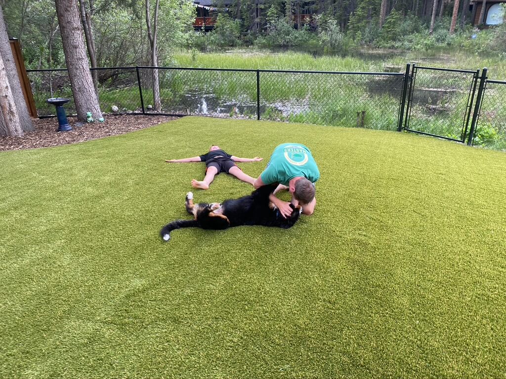 Does your pet love digging up natural grass? We offer an upgraded security package to guard against turf damage. The SYNLawn Pet System protects against heavy wear, digging, pulling, running, and chewing.