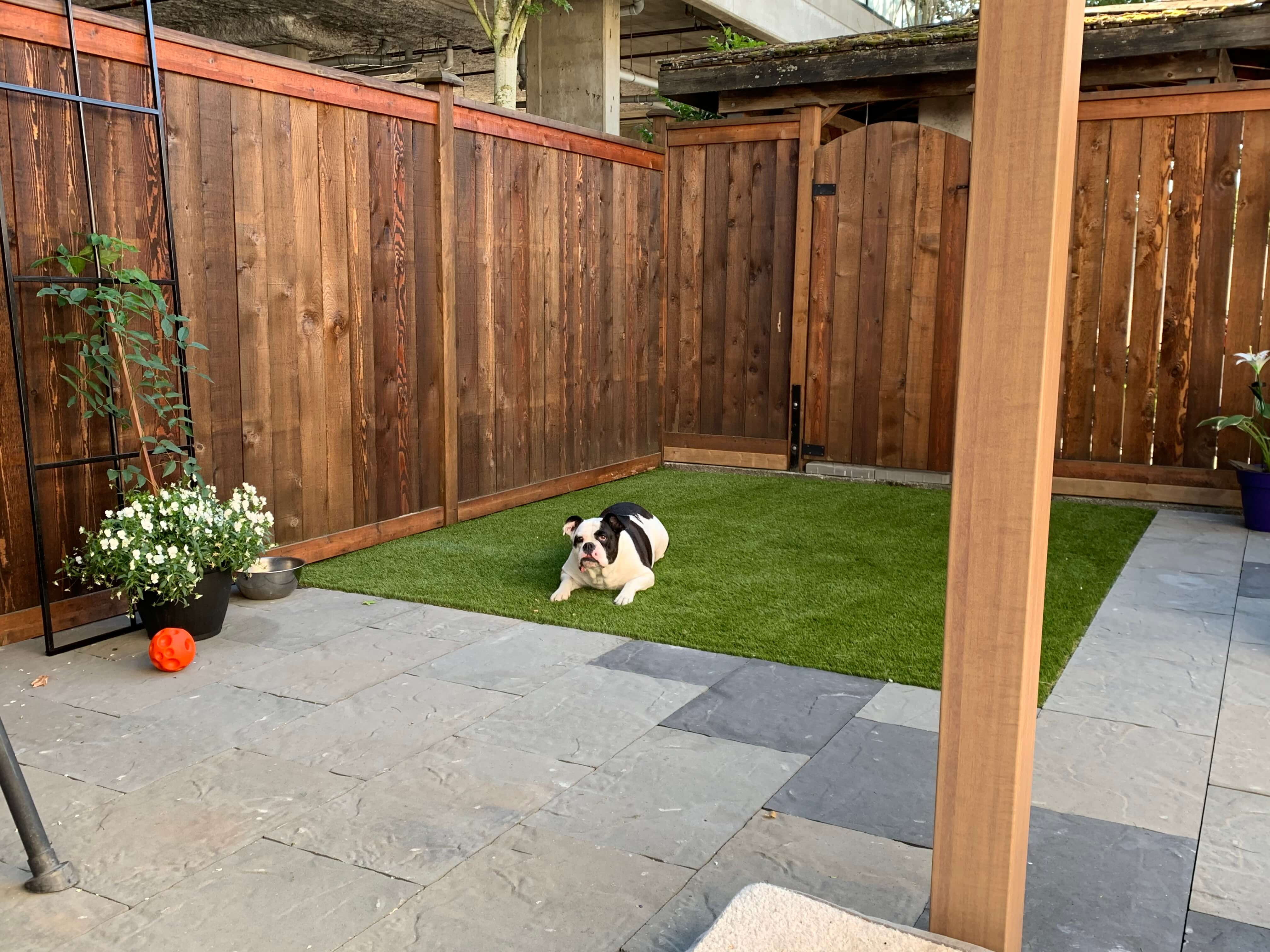 Imagine a world where you no longer spend hours repairing the brown spots and holes your active pet leaves behind! SYNLawn artificial turf for dog and pet areas lets you sit back and enjoy a realistic looking landscape. SYNLawn Vancouver Island’s artificial grass products for dogs and other pets are easy to install, designed to withstand any weather condition, and give your pets a clean, comfortable place to play. Ready to get started? Schedule a consultation with SYNLawn Vancouver Island today.