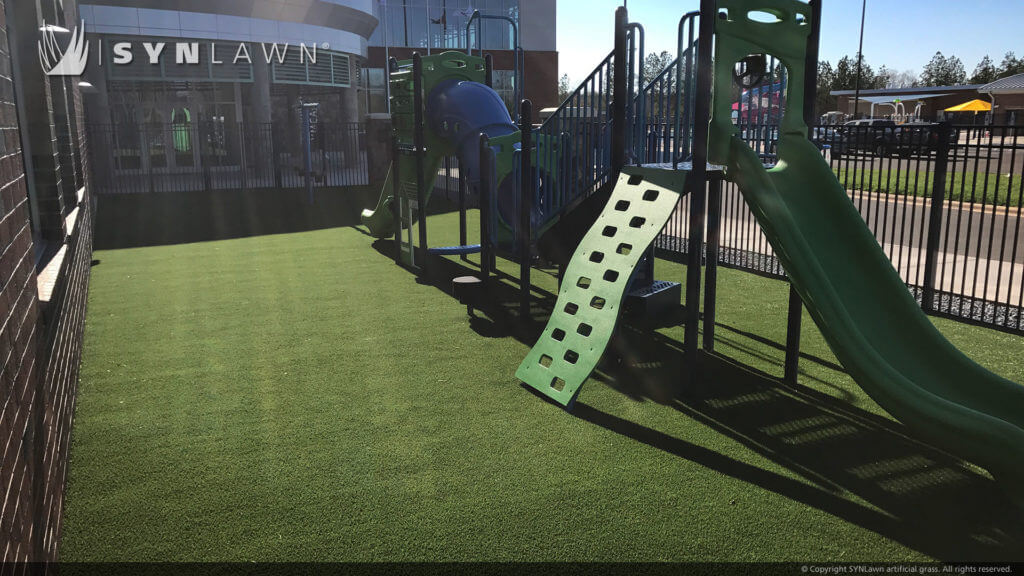 A playground surface that lets kids be kids, SYNLawn’s Playground System offers superb safety features that meet IPEMA standards, even with heavy use. While rubber surface playgrounds also provide protection, they also absorb heat in the summer and can become hard and brittle in the winter.